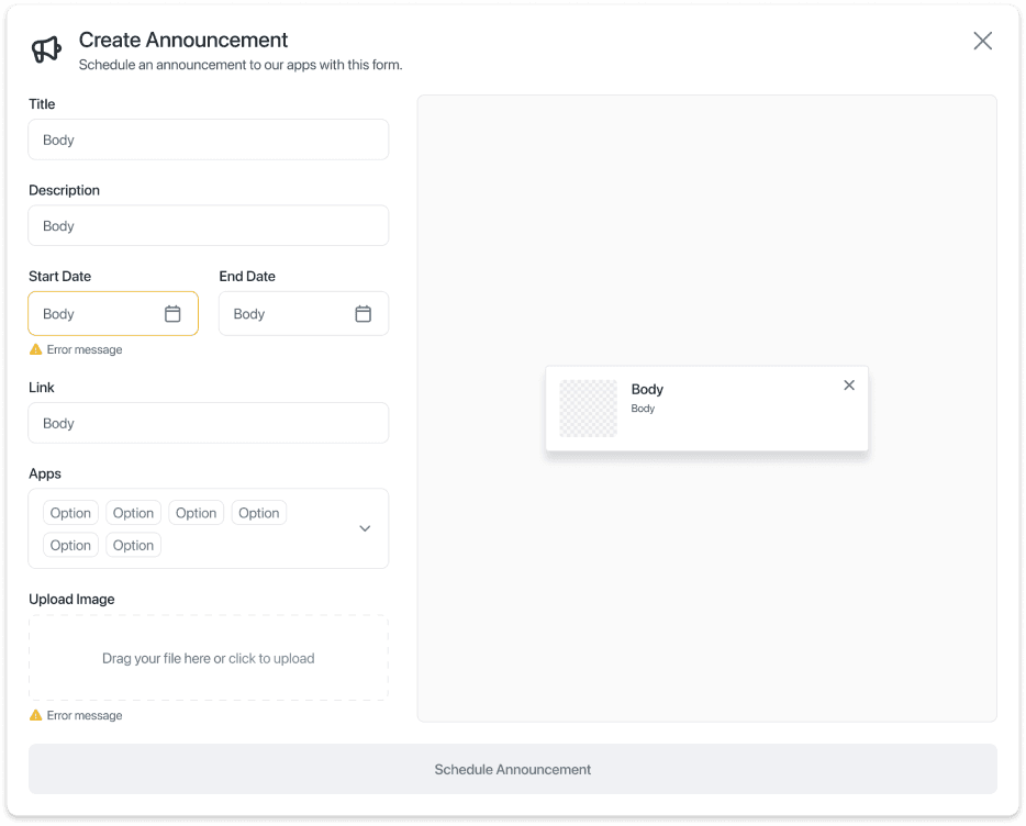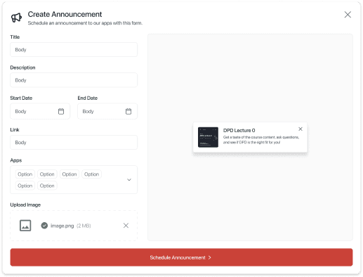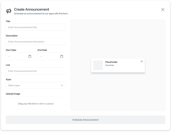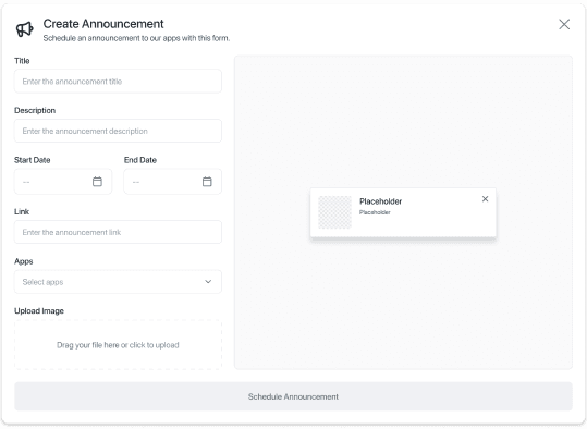 Streamline the process of creating announcements into a dynamic and user-friendly interface that allows users with and without a technical background to schedule and preview announcements?