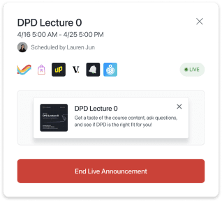 Skim a countdown of what announcement is scheduled to go live next at a quick glance.