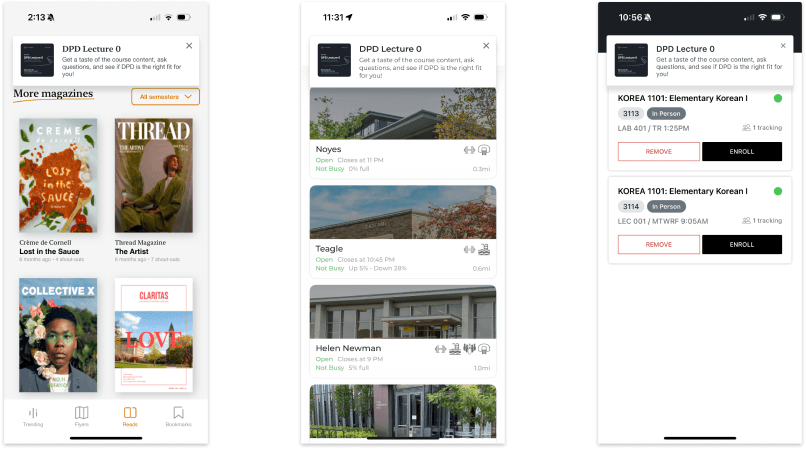 The new banner view is overall more efficient, consistent, and user-friendly based on the user’s goals and traditional announcements. The user can still clearly view content when they launch the app. Furthermore, the banner is similar to notifications, which makes clicking or dismissing the announcement more intuitive.