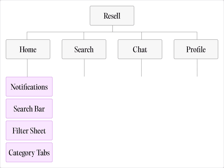 I designed and handed off a more intuitive and personalized home feed that helps users efficiently discover listings that match their interests and encourages them to explore and interact with a wider variety of listings. As a product manager for Resell, I ideated a need for this feature based on data analytics and user research.