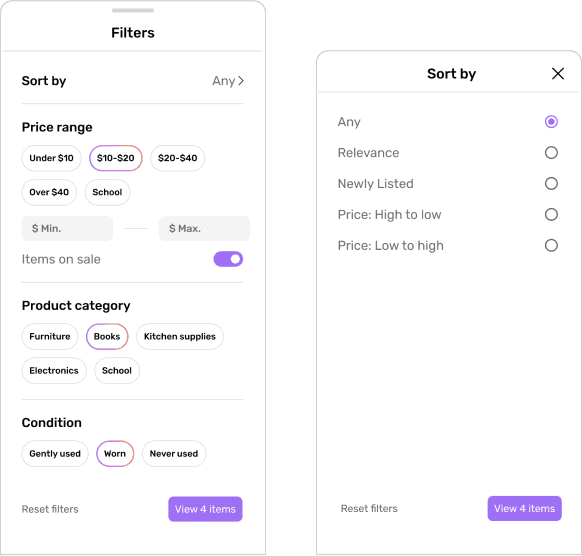 At first, I considered having the sort by options appear in the modal or in a separate entry point based on patterns I observed in my competitive analysis. However, this adds an extra step for the user.
