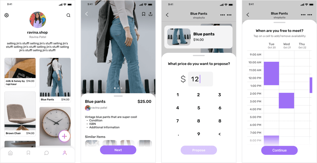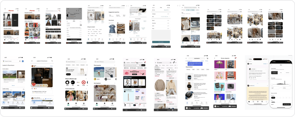I examined different elements and features in competitors like Depop and Poshmark, as well as competitors like eBay and Etsy, in order to look for opportunities to improve Resell's UX. Within these products, I analyzed usability issues, visual design, and content quality to assess how I can better serve users.
